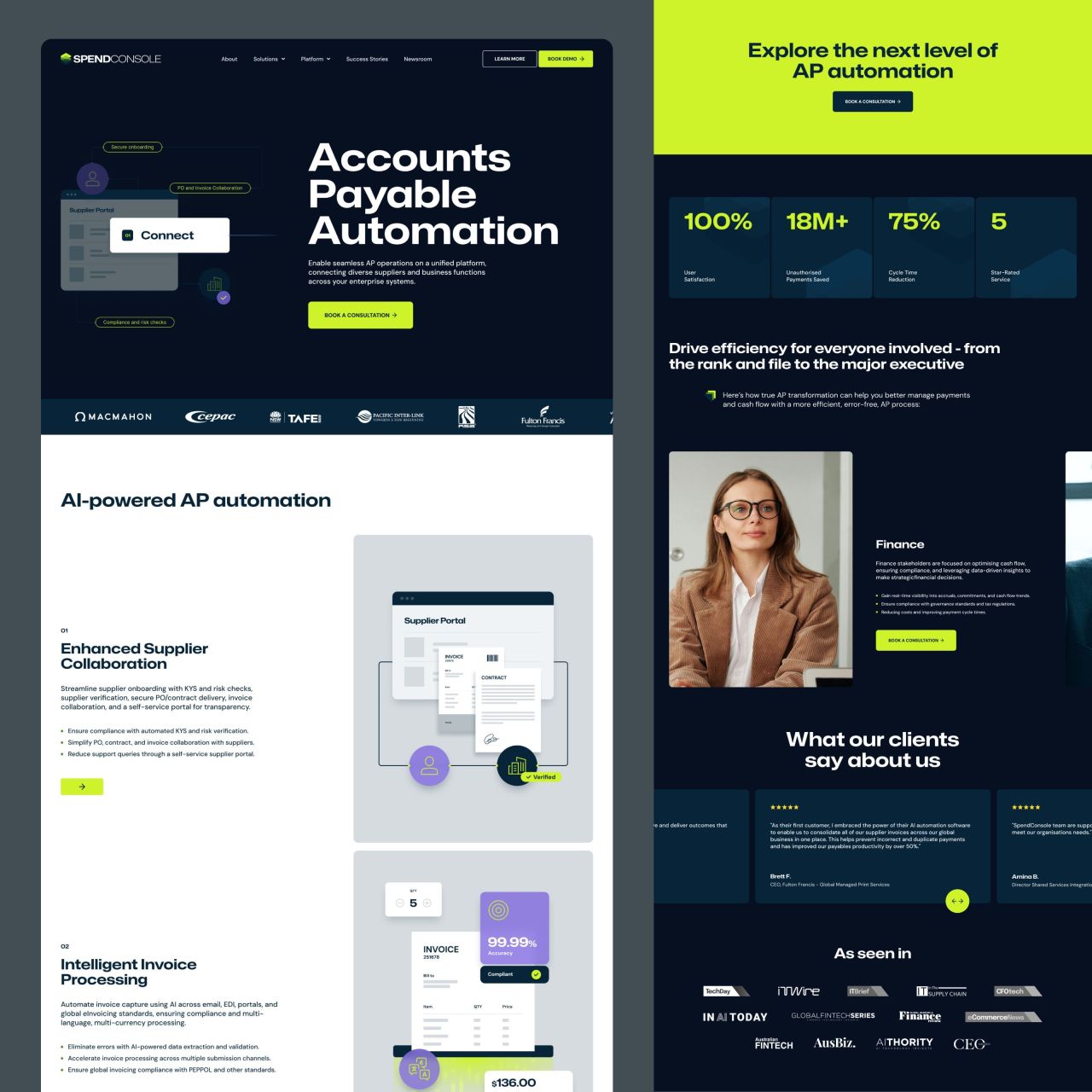 SpendConsole is an AI-powered financial ecosystem designed to automate and streamline complex Accounts Payable workflows. By leveraging artificial intelligence, the platform eliminates manual data entry and optimizes spend management for large enterprises. We focused on building a high-performance interface that turns complex financial data into actionable insights.